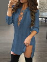 ワンピース レディース 長袖 ミニ丈 膝上 無地 ポリエステル アクリル ゆったり 翻 collar 春夏 韓国風 カジュアル ブルー ブラック