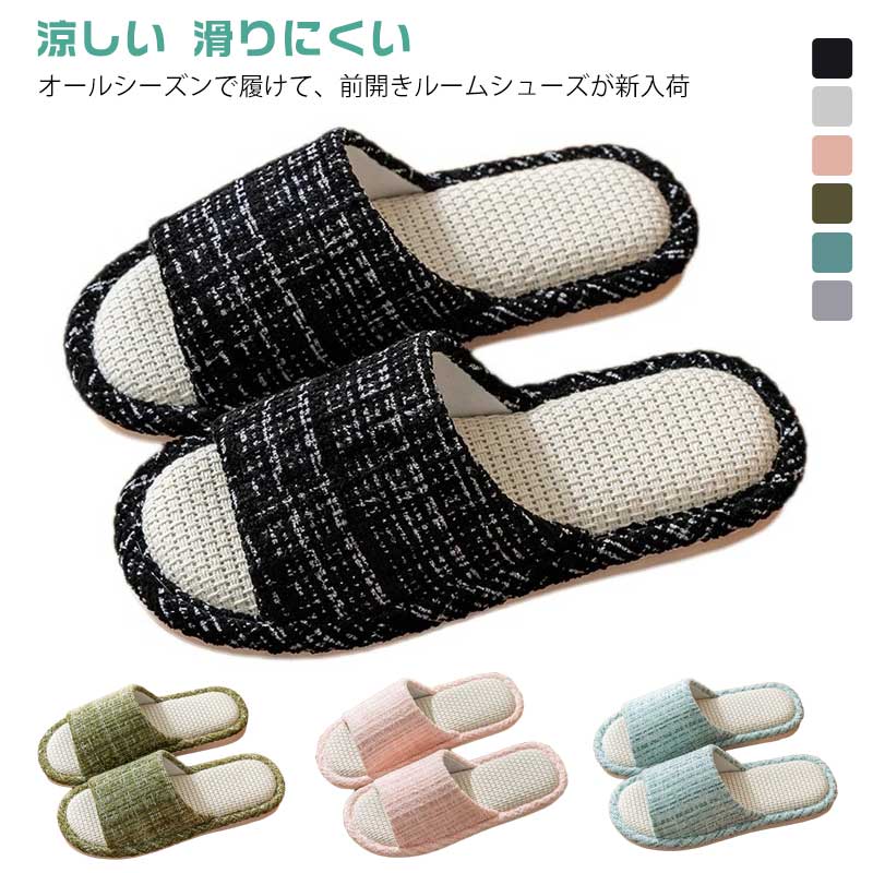 前開きスリッパ 室内用 ルームシューズ スリッパ レディース サンダル ルームスリッパ 夏用 室内 夏用 麻 室内履き スリッパ リネンスリッパ 自宅用 来客用 涼しい 滑りにくい 履きやすい おしゃれ 軽量 可愛い ルームシューズ 春秋 洗濯可 無地 シンプル 送料無料