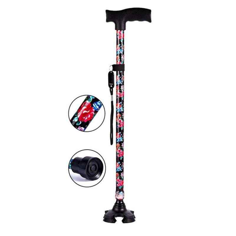 杖 おしゃれ 自立式 四点杖 自立杖 つえ 介護 自立 軽量 伸縮 歩行補助 レディース 女性用 敬老の日 母の日 誕生日 プレゼント ギフト ステッキ 長さ調節 ※折り畳み不可 高齢者 スリム 柄杖伸縮型 滑り止め コンパクト 2つの使用法 全10色 花柄 ()