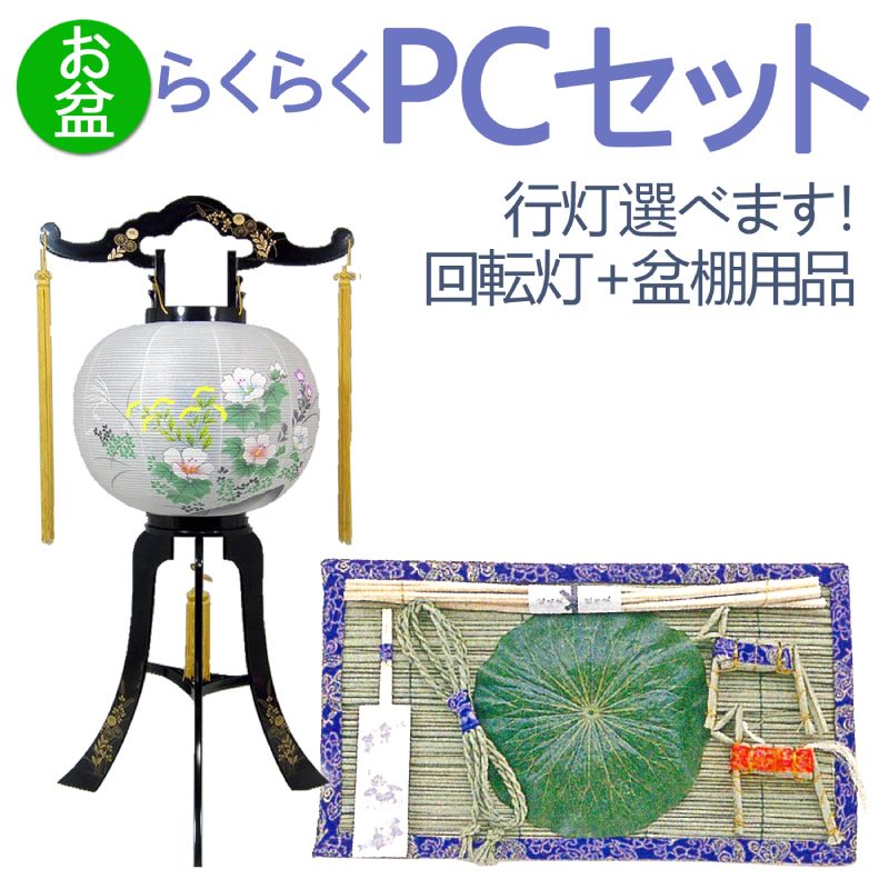 盆提灯 新盆 初盆セット らくらく お盆セット PC 回転灯 盆棚用品 [盆ちょうちん 初盆 新盆 灯篭 置き提灯 行灯 廻転灯 あんどん]