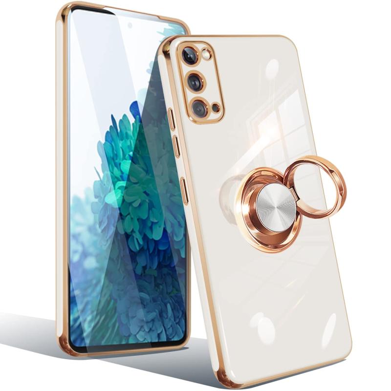 Galaxy S20 ケース リング 5G SC-51A SCG01 ギャラクシーS20 リング付き 耐衝撃 携帯カバー TPU 軽量 シリコン スタンド機能付き 360回転車載ホルダー 一体型レンズ保護カバー(クリーミーホワイト)