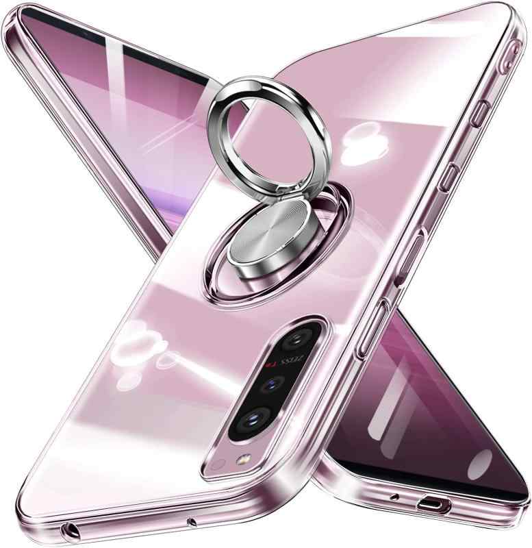 Xperia 5 II ケース SO-52A カバー リング クリア TPU 耐衝撃 透明 SOG02 スマホケース 一体型 スタンド機能 車載ホルダー ストラップホール付き Sony エクスペリア5II ケース 透明