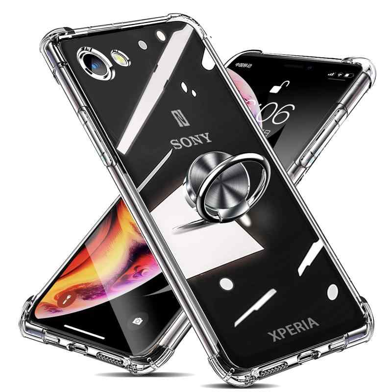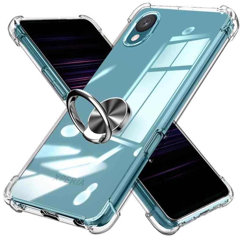 Xperia ACE III ケース リング付き クリア TPU 透明 耐衝撃 柔らかい手触り 四隅エアクッション カバー 頑丈 車載ホルダー対応 スタンド機能 防塵 薄型 軽量 落下防止 一体型 変形防止 ソニー Xperi
