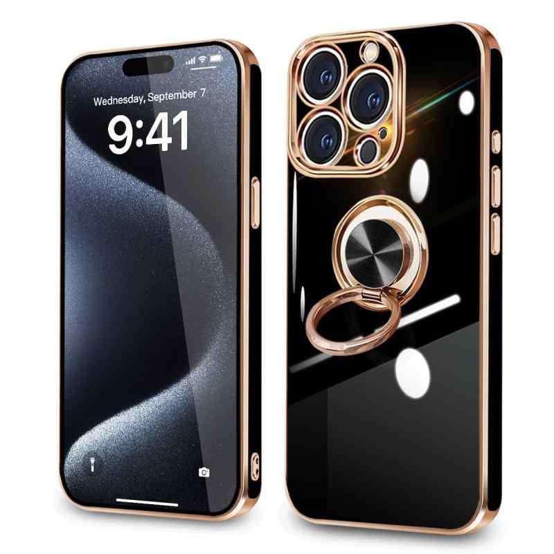 iPhone 15 Pro ケース リング付き 耐衝撃 アイフォン 15 pro リング カバー 360°回転 スタンド機能 TPU 車載ホルダー対応 6.1インチ レンズ保護 ストラップホール付き (ブラック)