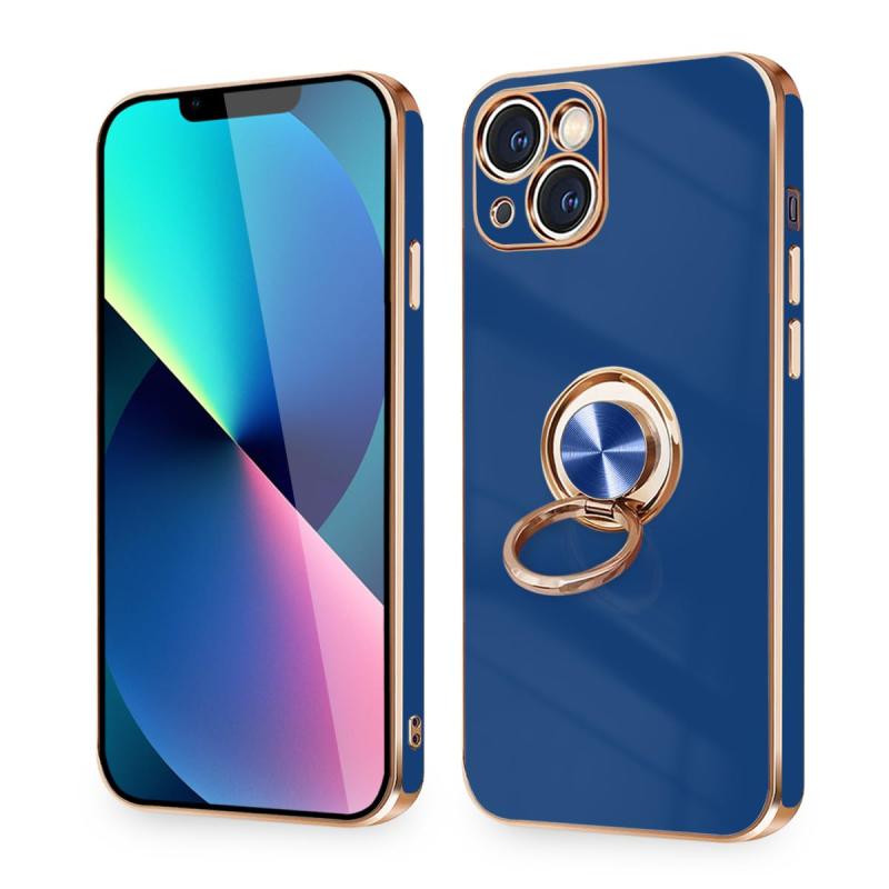 iPhone 13 ケース リング付き 耐衝撃 アイフォン 13 リング カバー 360°回転 スタンド機能 TPU 車載ホルダー対応 6.1インチ レンズ保護 ストラップホール付き (ブルー)