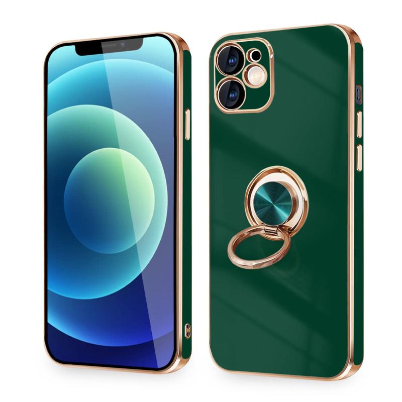 iPhone 12 ケース リング付き 耐衝撃 アイフォン 12 リング カバー 360°回転 スタンド機能 TPU 車載ホルダー対応 6.1インチ レンズ保護 ストラップホール付き (グリーン)