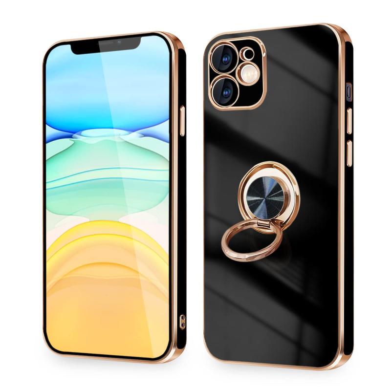iPhone 11 ケース リング付き 耐衝撃 アイフォン11 リング カバー 360°回転 スタンド機能 TPU 車載ホルダー対応 6.1インチ レンズ保護 ストラップホール付き (ブラック)