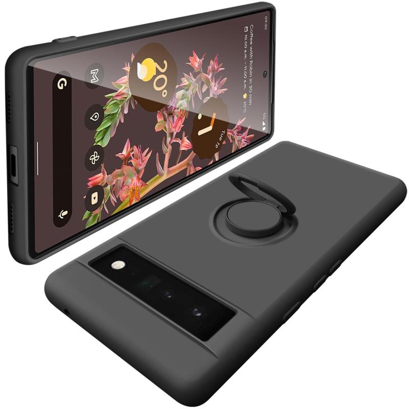 Google Pixel 6 ケース 耐衝撃 スタンド機能付き リング付 ピクセル6 リング スマホケース マット感 液体シリコン ソフト 360回転車載ホルダー (ブラック)