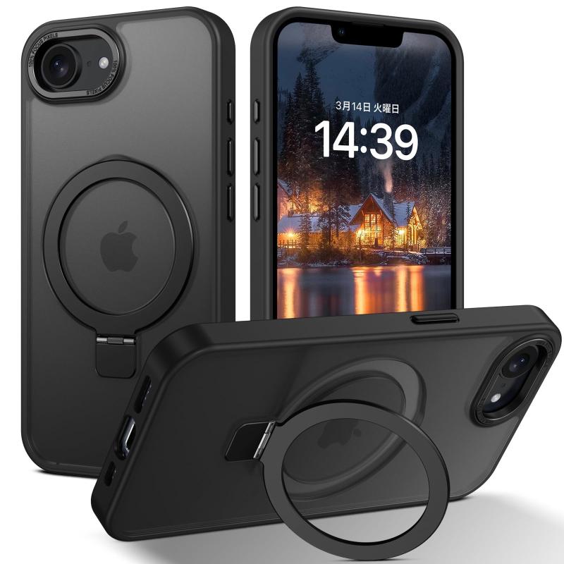 iPhone 16E ケース MagSafe対応 アイフォン 16e ケース マグネット搭載 スタンド機能 120°開閉可能 ブラック 半透明のデザイン 指紋防止 耐衝撃 一体型 薄型 TPUケース 車載ホルダー対応 ワイ【対応機種】iPhone 16E(6.1インチ)、カラー:ブラック。ご希望の商品、カラー、対応機種をご購入前にご確認お願い致します。iPhone 16eはMagSafe充電には非対応です。Qi 7.5Wのワイヤレス充電に対応していますが、本製品のケースを装着した状態でワイヤレス充電を行う場合、Qi 15W以上の充電器の使用をお勧めいたします。15W未満の充電器では、充電ができない場合がございますのでご注意ください。【マグネット搭載·フリーハンズ】マグネットを搭載し、マグネットシールを使用すること、どこでも簡単に固定でき、料理や動画視聴などスマホを持つのが不便な場合でも手軽に使用できます。両手を解放して快適な生活をお楽しみいただけます。【多用途·リングスタンド機能】120°開閉可能リングホルダーが付き、片手でスマホを操作でき、落下や滑りなどのことを防げます。リング.ホルダーの機能はスマホを横に放置できて、いつでもどこでも映画、音楽などの娯楽番組を思い切り楽しめます。【高品質·TPUの素材】 iPhone 16E ケースはTPU製で、非常に柔軟で耐久性があり、携帯の負荷を掛けずに楽々装着できます。表面撥油性コーティング設計、つや消し、滑り止め効果あり、指紋防止、油汚れ防止、防汗、繊細な手触り感、爽やかな感触も与えます。水滴や油汚れなどがスマートフォンケースに付着しても、軽くひと拭きで綺麗に拭き取れます。【耐衝撃·全面保護】このスマホケースはアイフォン 16Eの本体に完全フィットし、本体全体を包み込むデザイン。カメラレンズ周りは、より高く設計されており、レンズを摩擦や傷から保護します。