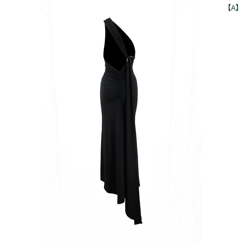 欧米 風 女装 2024 夏の新 商品の 斜め 肩の セクシーな 修身の 背中の 縮みの 透かし 彫りの 背もたれの 長い ワンピース