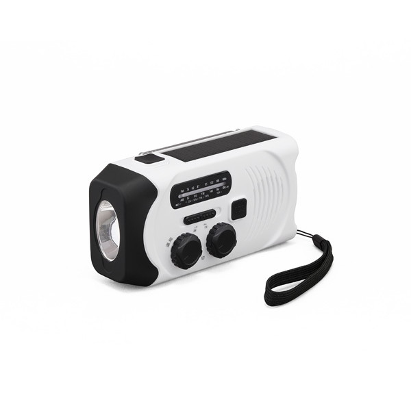商品説明★ 災害時やアウトドアに最適な多機能ラジオライトです。★ スマートフォン、携帯電話の充電が可能です。※機種によって使用できない場合があります。AM/FM(ワイドFM)ラジオが聴けます。※1分間の手回し充電で約5〜7分(中音量で使用した場合)80dBのサイレンのSOSアラーム付きです。LEDライト機能付き。※1分間の手回し充電で約10分点灯手回し、ソーラー、USBポートと3つの充電方式で充電できます。スペック* 商品サイズ(mm)幅×奥行×高さ:146×62×78* 受信周波数:AM:522〜1620kHz、FM:76〜108MHz:* 入力端子:USB Micro-B(DC5V)* 出力端子:USB Type-A(DC5V-1A以下)* 防滴性能:IPX3* LEDライト:全拘束 80lm 昼光色* 充電池:3.6V:2850mAh(リチウムイオン電池)* 付属品:USBケーブル 約50cm(Micro-B/Type-A)、ストラップ、取扱説明書