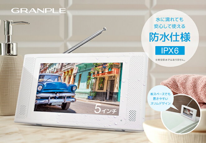 商品情報メーカー株式会社グランプレ(国内メーカー)防災ラジオ FMラジオ 録画機能付き 防水 フルセグ ポータブルテレビ 5インチ 防水テレビ 防災グッズ ワイドFM対応 防水ラジオ FM ポータブルラジオ ホワイト WPFULL5WH 日常、アウトドア、災害時など色々なシーンで役立つ一台。 ◆最大400時間の番組録画が可能◆市販のmicroSDカードへ番組録画が可能録画時間はワンセグ約400時間/フルセグ約10時間※microSDカード64GBの場合◆防水等級IPX6◆お風呂、キッチンなど水に濡れやすい場所でも安心して使用できます。※完全防水ではありません。◆フルセグ/ワンセグ対応◆自動切替機能搭載で、受信環境に応じてフルセグ放送とワンセグ放送を自動切替します。◆アンテナ変換ケーブル付属◆ご自宅の受信環境が悪い場合、録画を楽しみたい場合は、アンテナ変換ケーブルを使用して、家庭用のテレビアンテナケーブルに接続する事で受信感度が安定して視聴、録画が楽しめます。◆ワイドFM対応◆ワイドFM(FM補完放送)とはAM放送局の放送区域において、災害や電波障害に強いFMの周波数を使い、AMラジオの番組を聴くことができます。◆テレビ連続使用時間最大8時間◆【TV】画面表示ON:約8時間 画面表示OFF:約10時間30分【FM】画面表示ON:約8時間30分 画面表示OFF:約11時間※イヤホン音量10で使用した場合の数値 地域や使用環境によりワンセグTVの視聴ができない場合がございます。災害時など以外はご自宅のアンテナケーブルを本体に直接繋いで録画した地デジ番組を、後からお風呂場などお好きな場所でお楽しみください。本体アンテナでのTV視聴ができないという理由での返品・交換はできかねますので、ご了承いただいた上で購入をご検討いただきます様お願いいたします。 1