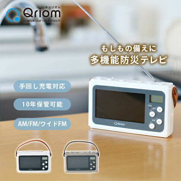 山善 YAMAZEN キュリオム Qriom 手回し充電ワンセグテレビ 防災グッズ 多機能 手回し 充電 防災 JYTM-RTV430 本体サイズ 幅15.5×奥行4×高さ9.2cm 重量370g 商品説明 ●コンデンサー充電池搭載で10年間保管可能●画面サイズ4.3インチで快適に視聴●約5分間(約150回転/分)の手回しですぐ満充電に●LEDライト、防塵防水対応でキャンプやアウトドアシーンでも活躍●スマートフォンへの充電にも対応●ACアダプター満充電時も手回し満充電時と同様の動作時間となります。●受信周波数:(AM)522/1710kHz、(FM)76.0/108MHz、(ワンセグテレビ)UHF13/62ch●アンテナ:(AM)内蔵フェライトバーアンテナ、(FM)ロッドアンテナ●スピーカー:直径36mm、定格出力200mW、最大出力350mW●音声出力端子:直径3.5mmステレオミニジャック※音声はモノラル●出力充電端子:USB Aタイプ(スマートフォン/携帯電話機用)●入力充電端子:USBmicroBタイプ(モバイルバッテリー用)●電源:単3形乾電池×3個 DC4.5V(※乾電池は別売り)、内蔵充電池3V/100F、DC5V(USB)、AC100V(ACアダプター)付属品:USBケーブル(約1m)、ACアダプター、ベルト、取扱説明書●メーカー保証:1年 商品補足説明 YAMAZEN ヤマゼン 山善 通販 手回し充電テレビ 手回し充電 手回しタイプ ラジオライト テレビラジオ 充電ラジオ 災害ラジオ 備蓄ラジオ テレビ 電気二重層コンデンサ LEDライト サイレン 防水 防塵 IP54 生活防水 コンデンサー 10年長期保管可能 AM/FM/ワイドFM 停電 地震 災害 防災 台風 竜巻 暴風 洪水 非常時 対策グッズ キャンプ アウトドア レジャー 備蓄 備え 便利 安心 スマホ スマートフォン バッテリー 充電器 99846:パールホワイト(PW) 99847:シャンパンゴールド(CG)
