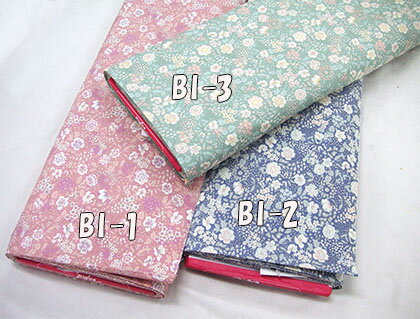 ご注文単位1は108cm巾×10cmです。 BI-1(モスピンク地) BI−2(モスブルー地) BI−3(モスグリーン地) 素材 綿100% 幅 108cm巾 10cm単位でカットします。