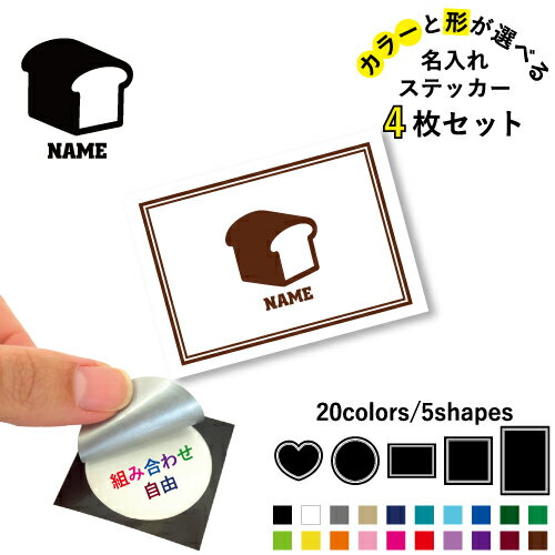 食パン 名入れ文字入れステッカー4枚セット 色と形が選べる シール 多目的ステッカー UVカット 円 ハート 正方形 長方形 スマホステッカー スマホケース 挟む シースルーシール 見せる 貼らない スマホ裏 plain bread、パン屋さん