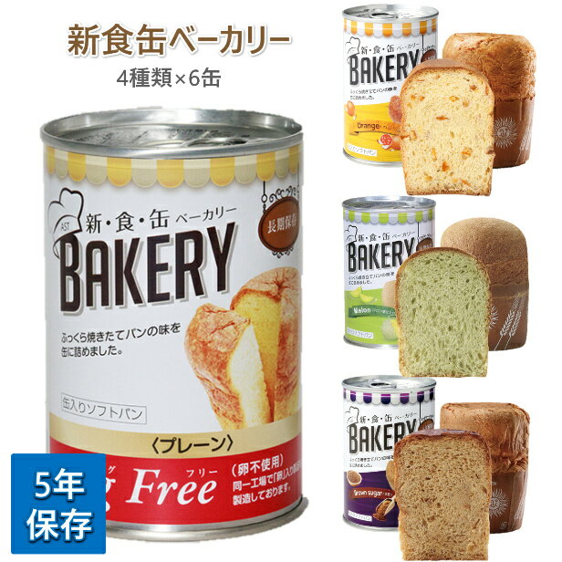 新食缶ベーカリー 5年保存 4種類×6缶 プレーン メロン 黒糖 オレンジ パンの缶詰 ベーカリー缶詰 ソフトパン 賞味期限5年 缶入りソフトパン アソート 災害用 非常食 備蓄用 非常食 カンパン 防災食