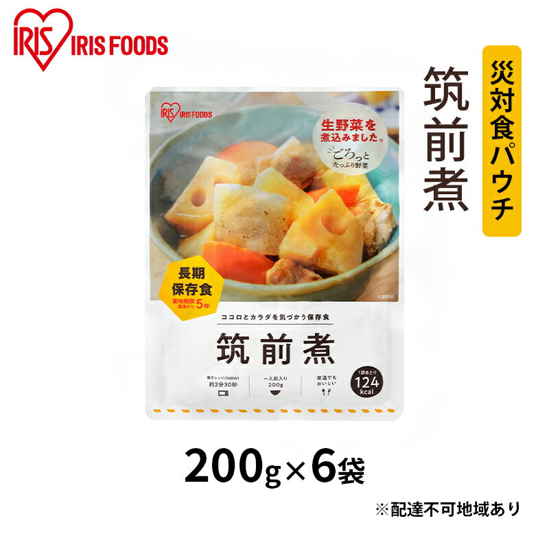 【ふるさと納税】【防災】災対食パウチ筑前煮 200g×6袋 アイリスオーヤマ 惣菜 加工食品 レトルト ココロ カラダ 保存食 たっぷり 野菜 鶏肉 煮込み 生野菜 常温 5年 長期保存 災害時