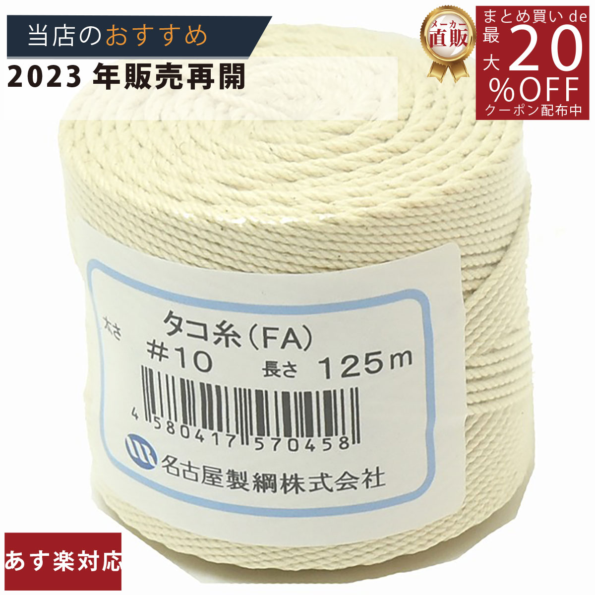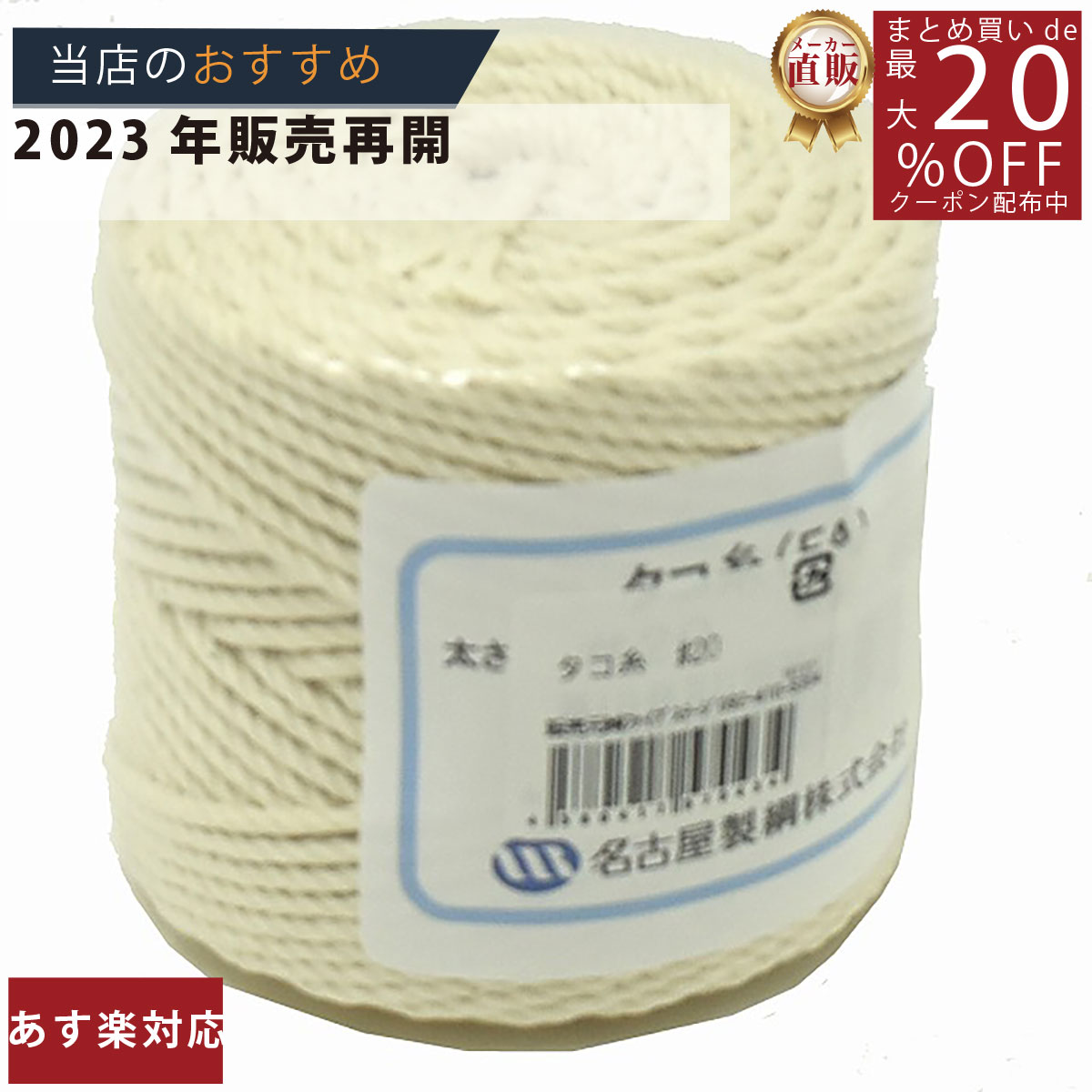 メーカー直販あす楽【たこ糸 凧糸 #20号】3980円以上送料無料 紺屋商事 日本製 綿糸 タコ糸 純綿再撚糸 まくらめ マクラメ 荷造り 紐 凧揚げ 工作 製作 手芸 盆栽 おもちゃ 料理 肉巻き チャーシュー 鶏肉 丈夫 太い 強い