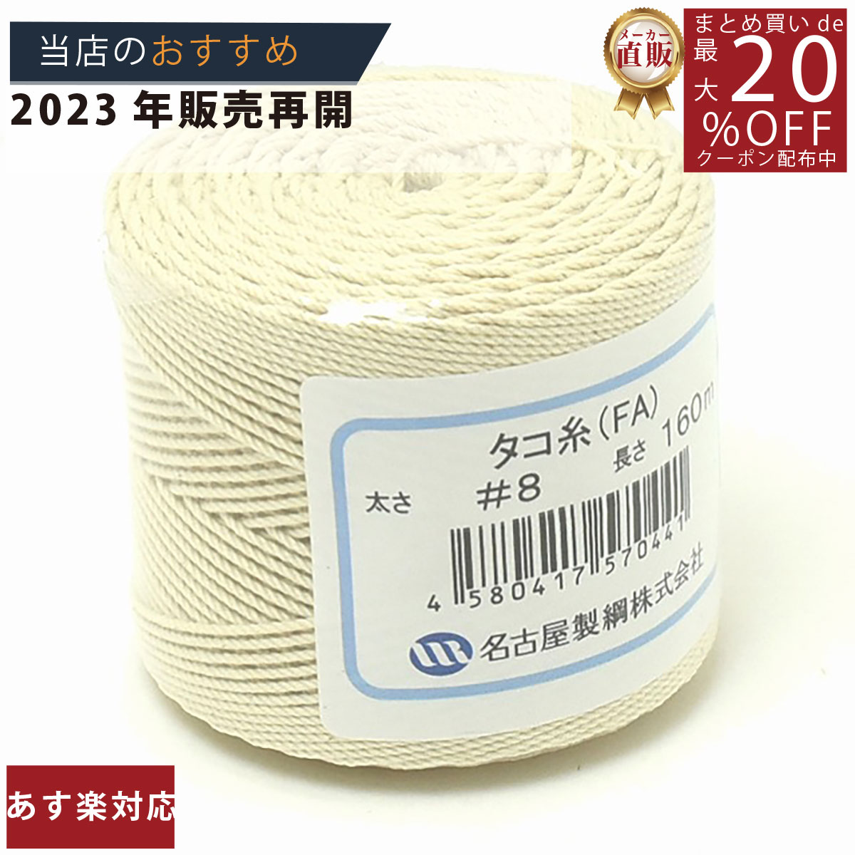 メーカー直販あす楽【たこ糸 凧糸 #8号 160m】3980円以上送料無料 紺屋商事 日本製 綿糸 タコ糸 純綿再撚糸 まくらめ マクラメ 荷造り 紐 凧揚げ 工作 製作 手芸 盆栽 おもちゃ 料理 肉巻き チャーシュー 鶏肉 丈夫 太い 強い