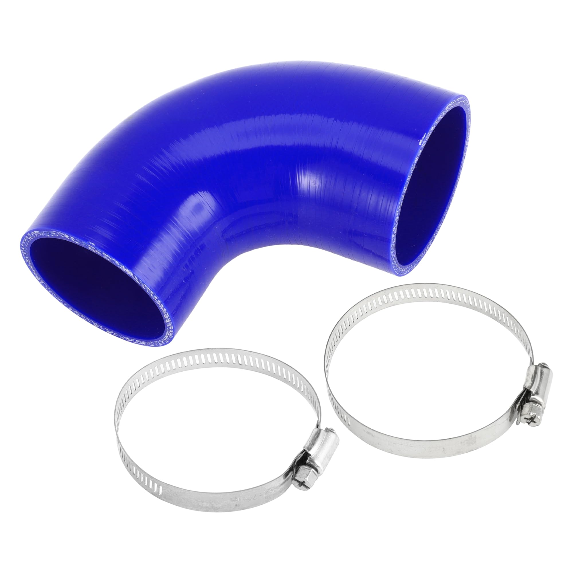 T 1セット63 mm/2.48"-70mm/2.76" ID 90mm/3.54" 長さ 90度 ブルー車用シリコンホース クランプ付き クーラントホース ユニバーサル