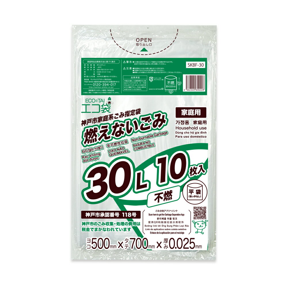 エントリーでP10倍★4日20:00〜10日1:59まで 【バラ販売】SKBF-30bara 神戸市指定袋家庭用 不燃 30リットル 0.025mm厚 透明 10枚/ポリ袋 ゴミ袋 ごみ袋 平袋 袋 神戸市 指定袋 家庭用 30l サンキョウプラテック