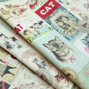 生地 布 入園入学 北欧風 ハーフリネン/幅136cm ≪ ヴィンテージキャット ≫ 【10cm単位販売】【女の子】【動物】【ビンテージ】【ユニーク】ネコ 猫 VINTAGE CAT コットン 北欧 韓国