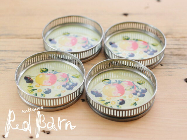 サイズ φ8cm 材質 ガラス ティン 色 イエロー レッド グリーンパープル 商品説明 フルーツ柄が可愛いガラス底の4枚セットコースターです。1940年代〜1950年代のものと思われます。日本製逆輸入商品です。状態は底の部分ティンの縁が所々凹んでいますが全体的にはふるいものの割には綺麗だと思います。 レビューの書き方 レビューの記入方法は こちらへ♪ なるべく実物に近いカラーになるように注意を払っておりますが、お客様のモニター使用環境により、若干お色が異なって見えることがありますのでご了承下さい。 実店舗でも販売しております。在庫は毎日更新しておりますが、入れ違いで売れてしまった場合は、ご容赦下さいませ。