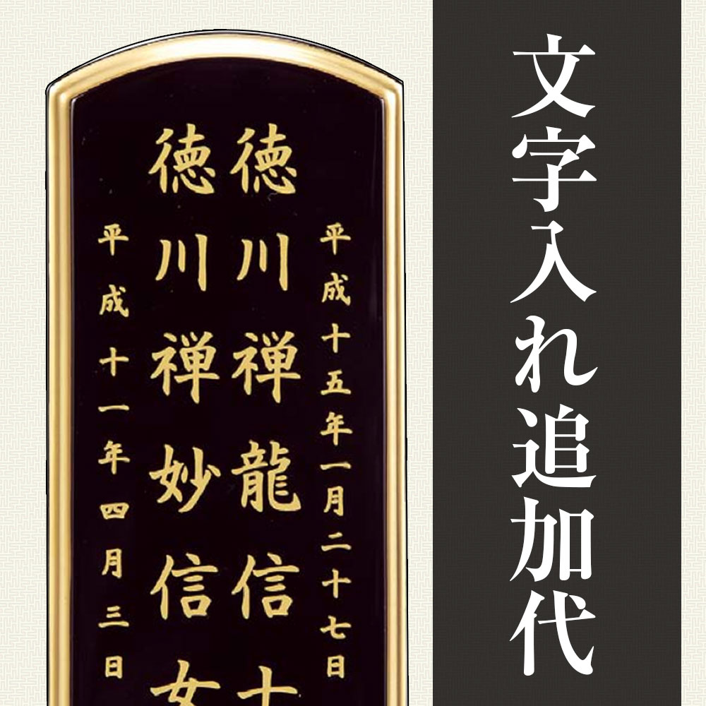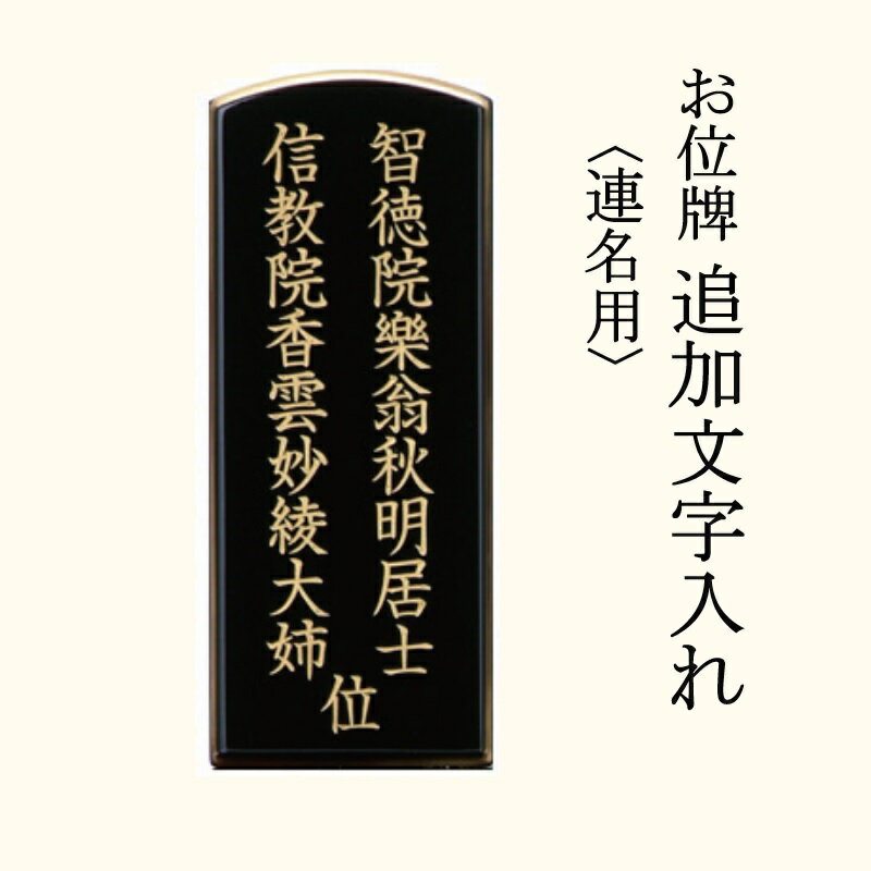 お位牌 追加名入れ料金 お位牌ご購入時に追加文字入れが必要な場合にお買い求め願います(2名様文字入れ用)。 ※持ち込み位牌は対象外です。