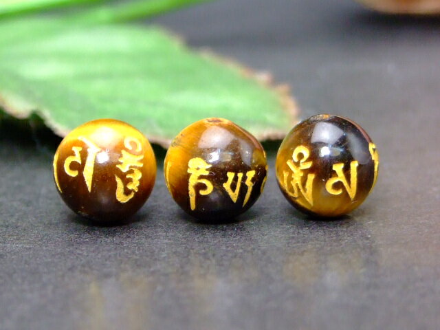※画像と同品質のものをお送りします。 オリジナルアクセサリー作りに是非どうぞ〜〜(m−m) 素材 天然:タイガーアイ サイズ 約:重さg 玉径8mm・±0.5mm 1粒売り ※ 多少の誤差はご了承下さい。観音を字音化した六文字の真言(マントラ)☆ 六字真言は、チベットで「マニ」と通称され、 「オン・マ・ニ・ペ・メ・フン」 (Om・Ma・ni・ Ped・me・Hum)、 「オン」=「オーム」は「空」にあってマンダラを示すとされています。 その意味は「光明・摩尼宝珠・蓮華・金剛杵」を表しています。 チベット文化圏には、 道々の路肩に六字真言を書き込んだマニ石、 マニ車をおおく見かけることができます。 これは、観音を字音化した6文字の真言で、 チベットの人々はマニ車を回しながら一日唱えつづける マントラがそれである。 観音菩薩は慈悲の化身であるとされ、この真言を唱えることによって 、 積み重ねた悪業から逃れ、徳を積み、苦しみの淵から救いだし、 悟りを開く助けになるとされて います。 その六字真言を、生命の石として愛されている手彫り彫刻いたしました。