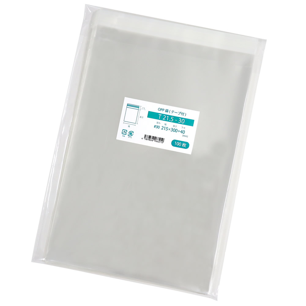 材質:OPP サイズ:厚さ0.03mmx幅215mmx長さ300mm +テープ部分40mm、入数:100枚入x1袋または1000枚(100枚入袋x10セット)・日本製。透明度が高く光沢があるので高級感があり、商品の中身をきれいに見せることができます。ワンタッチで封ができる大変便利なOPP袋です。OPP袋は別名としてクリアパック・クリスタルパック・透明袋・OP袋・OPパック等の呼称があります。テープ部分は帯電防止処理済です。テープを剥がした際、静電気でテープが手に付着することがありませんので封入作業のストレスを大きく軽減することができます。アクセサリーほか各種小物の包装等、ネットオークションやフリマサイトでの発送用のまとめ買い他、ラッピング資材としても多数ご利用いただいております。商品名 T21.5-30 サイズ(mm) 幅215x長さ300テープ部分40 厚さ(mm) 0.03(標準的な厚さ) 素材 OPP 特長 テープ付・剥がしたテープが手に付かない帯電防止加工済 用途 アクセサリー・小物・雑貨・書類等 サンプルご請求 可能 穴開け加工 可能(OPP袋空気穴加工オプションのページをご確認下さい) 同じサイズの厚さの異なる商品 - 他のサイズ テープ付きOPP袋サイズ一覧 配送 袋単位で小数量の場合、メール便配送可。ご注文の総量により宅配便での配送に変更させていただきます。 注意事項 OPP袋の性質をご説明しておりますのでご注文前にご確認下さい。