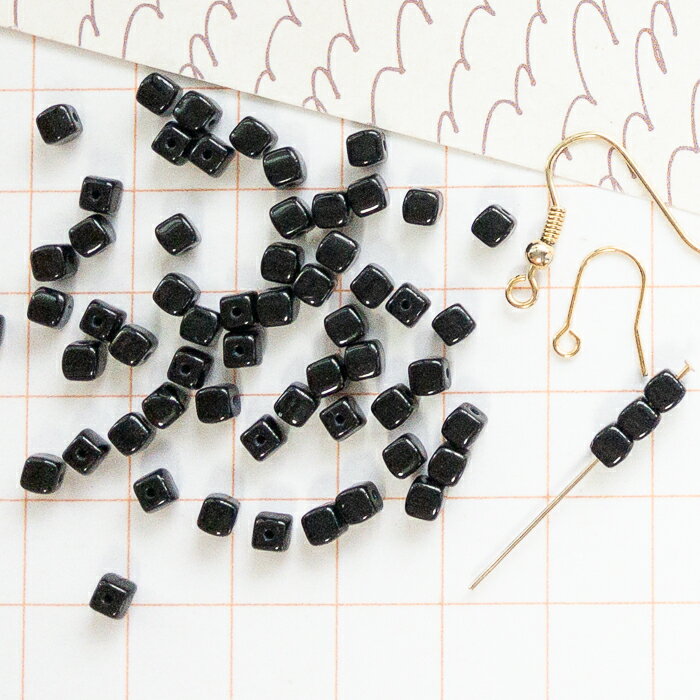 チェコビーズ 【3.5x3.5mm 55個】 ジェットブラック ミニキューブ 四角 しかく ガラスビーズ H076