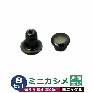 ミニカシメ 片面並足 3.5mm【ブラック】黒ニッケル 8セット(頭 足 各8) 頭3.5mm 幅4mm 高4mm 真鍮 黒ニッケルメッキ 極小カシメ 足長さ4mm 2つの部品で隙間なく布や皮を固定する金具 装飾金具 かざり 金属パーツ