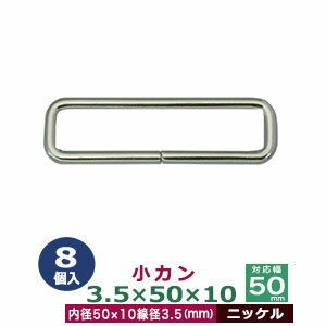 品 名:小カン3.5×50×10【ニッケル】 サイズ:線径3.5mm 内径50×10mm 材 質:鉄製 メッキ:ニッケル 詳 細:8個入1袋 加 工:溶接なし ◆角カン・小カン 角カン・小カンは、鉄線を曲げて加工し四角い形を作った線材金具です。角カンとは、その名の通り四角い形をしたカンです。縦と横の比率が小さい、ズングリした印象をうける四角のカンです。小カンは角カンに比べると、縦横の比率が大きく平べったい印象のある四角環です。 角カン・小カンをご使用時の注意点 ・角カン・小カンを選ぶ際に、線の太さを表す「線径」、大きさを表す「内径」をご参考にお選びください。 ・線径とは、カンを形作る鉄線材の太さのことです。太ければ太いほどシッカリした仕上がりになり、負荷をかけても形が崩れません。 また、同じ内径でも線の太さによって、印象が変わりますので、金具を使う作品のイメージにあわせてお選びください。当店の角カン・小カンは、鉄製です。主に服飾・雑貨の用途に使われるものを販売しておりますので、強度をお求めの方には不向きです。予めご了承ください。 ●各種カンの大きさは下記です。 ・丸カンはコチラ ・二重カンはコチラ ・角カン・小カンはコチラ ・Dカン・月カンはコチラ ・ビラカンはコチラ ・ナスカンはコチラ ・手カンはコチラ ・リュックカン(一本線送り)はコチラ ・カニカンはコチラ ●各種カンお得セットは下記です。 ・小袋セット ・リーズナブルなお得セット ●その他、カシメ・ハトメは下記です。 ・カシメはコチラ ・ハトメはコチラ ■クラフト金具卸のカン金具 ・丸カン 円状の丸いカンです。大きいものから小さいものを集めました。 ・二重カン 二重カン・二重リングです。小さいものはキーホルダーやアクセサリー、ストラップなどに使われています。 ・角カン&小カン 縦:横の比率が大きくないタイプの四角いカンは、カバンや服飾雑貨に使われます。縦:横の比率が大きいタイプの長四角のカンは、カバンやベルト、ブレスレットに使われ、タルカンとも呼ばれます。 ・ビラカン 額縁の裏や、広告POP用金具として使われます。大カシメで止めてください。 ・Dカン&月カン カバンの肩紐などの長さ調節用などにも良く使われているDカンと月カン。各種サイズからお選びください。 ・ナスカン アクセサリーパーツやキーホルダー、カバン装飾具と広い用途で使われるナスカンです。 ・リュックカン(一本線送り)当店では一本線おくりと呼んでいる商品です。移動する線が真ん中にあり、紐調整金具として一般的な金具です。(関連商品:美錠) ・カニカン ストラップやキーホルダーなどに使われるカニカンとよばれる金具です。