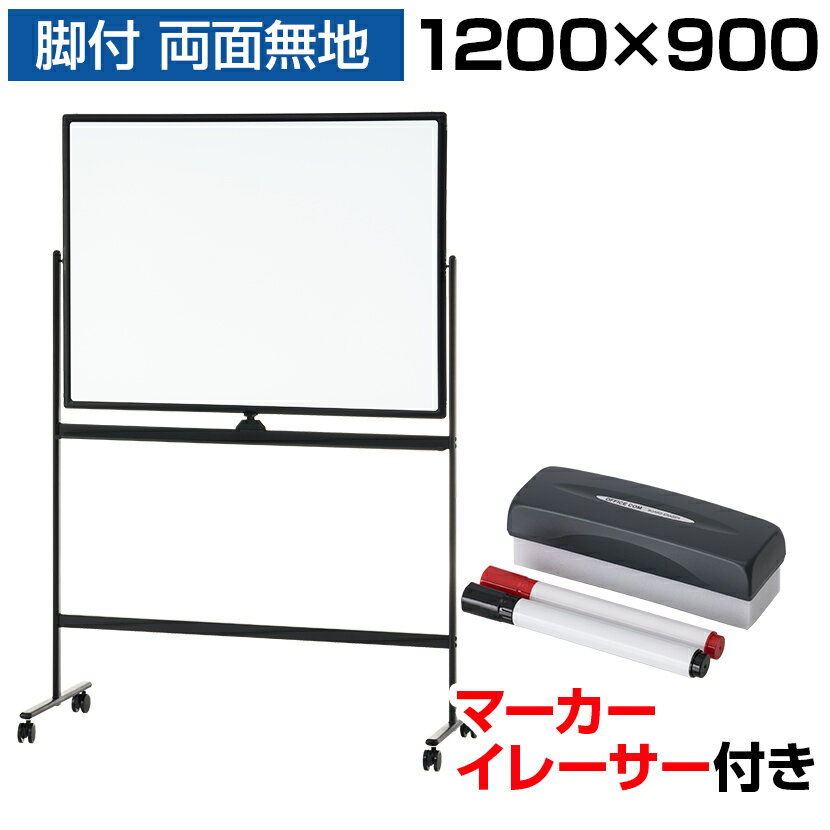 【法人送料無料】ホワイトボード 脚付き 両面 ブラックフレーム 1200×900mm マーカーセット付き マグネット対応 白板ウォール スチール マグネットボード L脚 掲示板 無地 足付き キャスター付き ミーティング オフィス ボード 会議マーカー マグネット