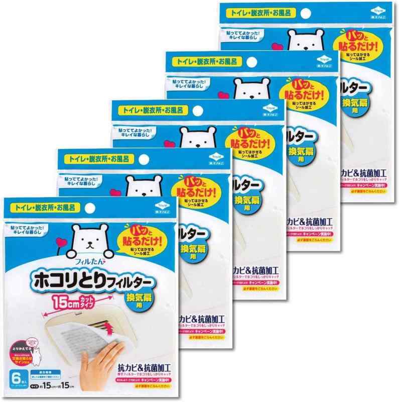 東洋アルミ(Toyo Aluminium) (TOYO ALUMINIUM) ほこり取り ホワイト 5個 パッと貼るだけ ホコリとりフィルター 換気扇用 5個セット粘着タイプでシールみたいに簡単取り付け。トイレや脱衣所、お風呂の天井にある換気扇に付くホコリ汚れを防止するフィルターです。商品本体サイズ:約 15cm×15cm枚数:6枚入り x 5個セット本体重量:3g/枚材質:抗菌抗カビ消臭加工不織布