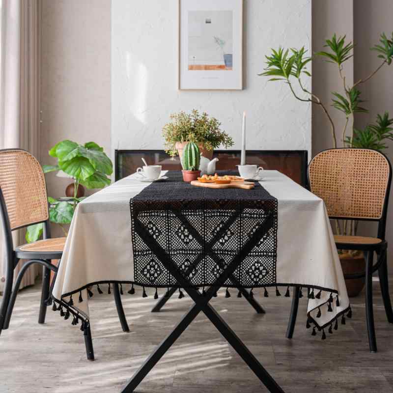 テーブルクロス 長方形 白 無地 綿麻素材 防塵 コントラストカラー レース 切り替え 北欧風 おしゃれ モダン カフェ リビング ダイニング 食卓カバー