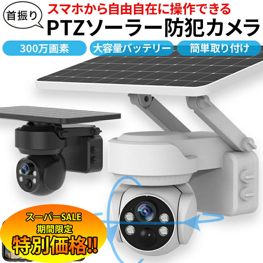 【楽天スーパーSALE限定★特別価格】 防犯カメラ 屋外 ソーラー 自動追跡 AI 自動追尾 家庭用 工事不要 パンチルト PTZ 首振り 監視カメラ ネットワークカメラ 電源不要 家庭用 ワイヤレス wifi 300万画素 夜間 IP65 無線 スマホ 連動 防犯