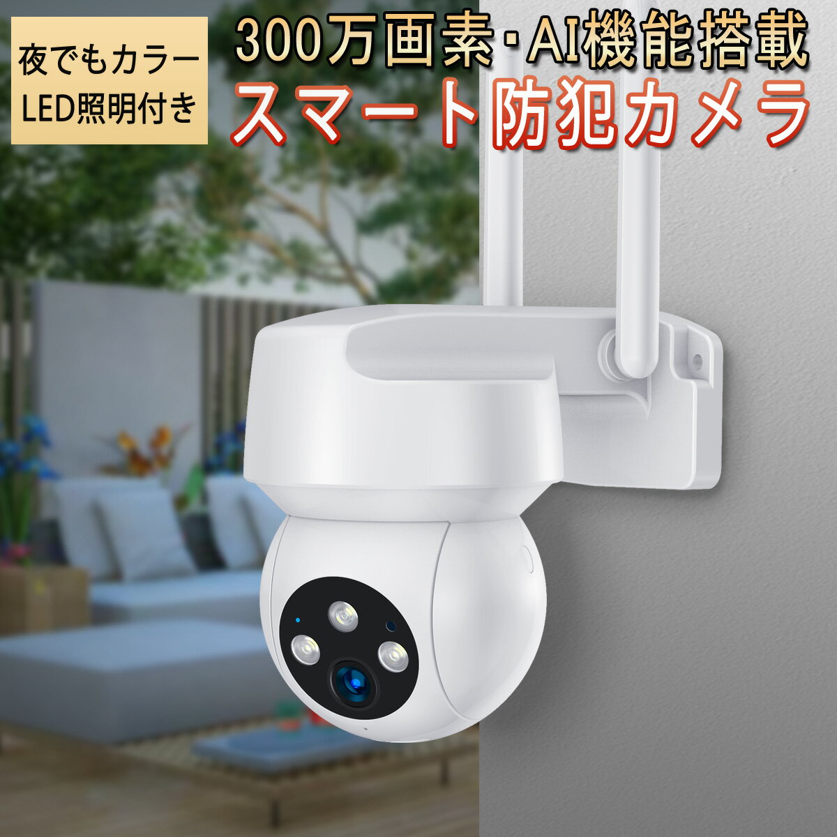 商品情報商品の説明主な仕様 【400万高画質・360°広範囲視野・可帰位自動追跡】高性能4MPのCMOSセンサーを搭載し、高解像度(2560*1440P)と8倍のデジタルズームで遠距離でも人顔や車のナンバーまでの細部をはっきり見えます。水平350°/垂直90°回転機能が搭載され、いつでもスマホからレンズの向きを好きな角度に調整し、戸建の車庫と入り口が360°全方位見渡せて、死角なしでの監視が可能です。自動追尾機能が付き、人を検知するとすぐに自動的に追跡し、重要な瞬間を逃さず全部記録します。br【20M長距離暗視・AI人物検知・投光威嚇】 3個赤外線とライトLEDが搭?され、二つのナイトビジョンモード(常時赤外線白黒モードと常時点灯カラーモード)を選択可能で、最大20mの赤外線照射を達します。鮮明なカラー映像を撮影することができるので、不審者や泥棒の服装の色まで映し出し、細部まで必要な情報を得ることができます。AI による人物検知機能を備えており、精度の高いアラートを実現します。またAI人物検知が夜に不審者の侵入を感知した場合には、自動的に発光威嚇します。専用のスマホアプリにリアルタイム通知が届く設定にしておけば、すぐに現場の映像を確認することができて安心です。自宅やオフィス、店舗などの金庫をはじめとした貴重品の防犯対策に活用できます。br【複数のデータ保存方法・常時録画・H.265ビデオ圧縮】 録画したビデオの保存方法(最大128GBメモリカード/クラウドストレージ)を自由に選べます。24時間連続録画、動体検知録画、スケジュール録画の三つのモードで様々な場所と用途に合わせて使用できます。高度なH.265 ビデオ圧縮テクノロジを搭載しており、他社のH.264 ビデオ圧縮規格と比べて、半分の帯域幅とストレージ容量で、より良好なビデオ品質を実現します。不審者の侵入とか車両盗難の証拠、子供の帰宅などの些細で大事なことまで映像に残ります。br【強化アンテナ・流暢な双方向音声・IP66防水規格・家族と一緒に共有】 強力な内部アンテナにより、壁を貫通して電波を伝送することができるほか、高い耐干渉性能を実現します。ルーターが離れた場所にあっても、接続の安定性と信頼性が確保されます。ノイズキャンセリング機能搭載の内蔵マイクにより、約8メートル離れた場所の音もはっきりと拾うことができます。スムーズな双方向の通話を実現しました。どこにいても裏庭の様子を映像と音で把握できます。カメラと接続するケーブルの端部は一体性のデザインで、防水処理必要なし。IP66等級の防塵、防水性能を備えており、雨天、晴天、暴風、降雪など、どのような天候でも使用できます。カメラをご家族のスマートフォンに共有し、家族みな同時に同じ画面を閲覧できます。br【複数端末対応・技適認証済み・サポート保証】 IOS/Android/Windows対応、スマホで「MIPC」アプリをダウンロードし、全ての操作はスマホで遠隔操作できます。カメラはAlexaをサポートして、家事をしながら、寝ている赤ちゃんの姿も見守ることができます。家事も育児も楽になります。技術基準適合証明取得済、ご安心してご利用くださいませ。ご購入より30日内なら返品または交換ができ、万が一、商品の品質問題や使用問題があれば、ぜひ、弊社へご連絡お願いいたします。弊店はお客様に最高水準のアフターサービスを提供することを約束します。?連絡通路は、?注文履歴より、販売元からご連絡お願いいたします。弊社の公式メールアドレスまで、ご連絡お願い致します。