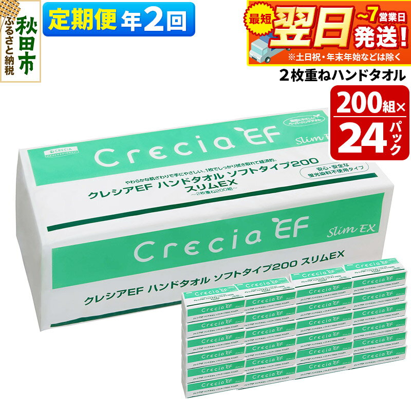 【ふるさと納税】最短翌日発送《6ヶ月ごとに2回お届け》定期便 ハンドタオル クレシアEF ソフトタイプ200 スリムEX 2枚重ね 200組(400枚)×24パック 秋田市オリジナル