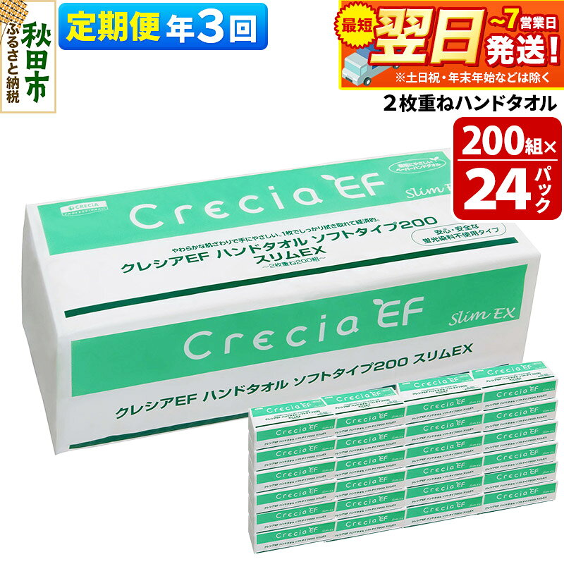 【ふるさと納税】最短翌日発送《4ヶ月ごとに3回お届け》定期便 ハンドタオル クレシアEF ソフトタイプ200 スリムEX 2枚重ね 200組(400枚)×24パック 秋田市オリジナル