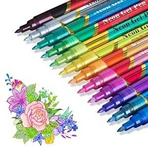 JR.WHITE Glitter Metallic t Pens: Sparkle Water-Based Marker Pen for Greeting Cards, Mugs, Wood, Art Drawing, Rock ting, Posters, Albums, Scrapbooking (12-Count)