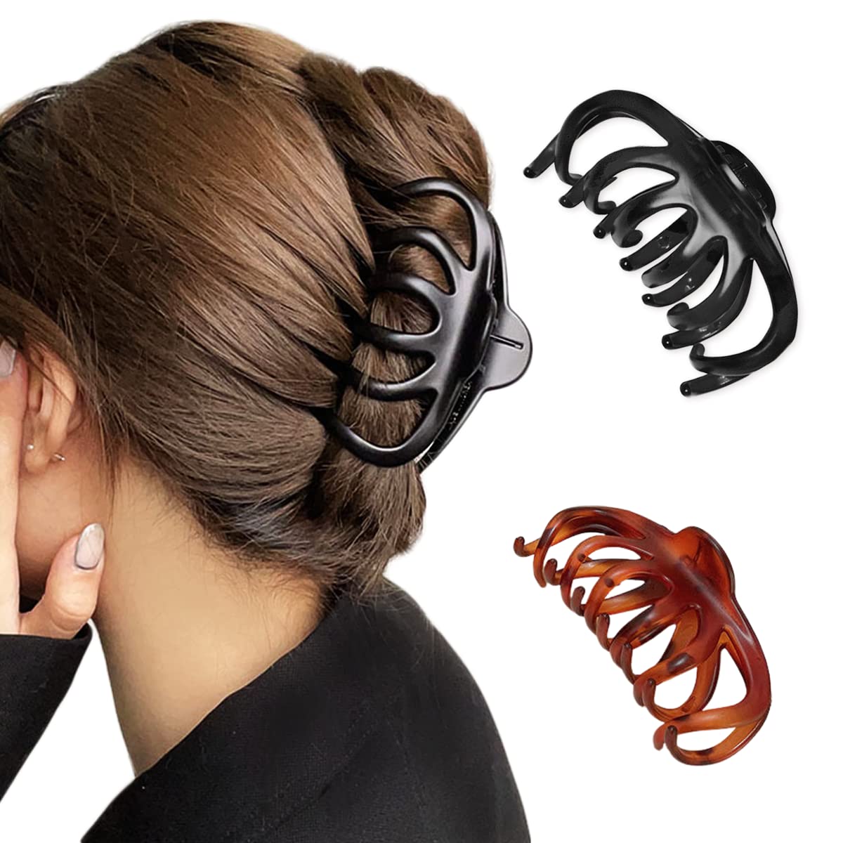 Diamant S.T.A ヘアクリップ 大きめ ヘアアクセサリー 2個入り 大人女子 バンスクリップ レディース 髪留め 韓国風 (2個セット) (ブラック×イエローブラウン)
