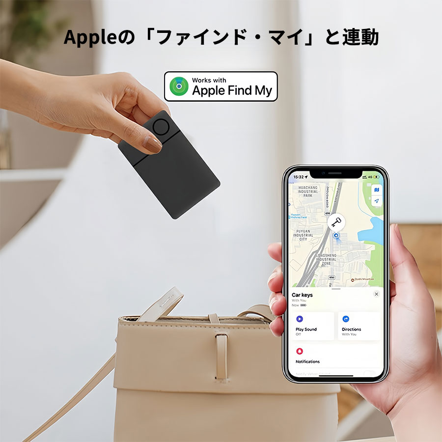 【超高性能 紛失防止タグ!】(1)充電や電池交換不要!使い切りの中でもっとも長持ち!(2)業界最薄のgpsタグ!厚み僅か1.6mm!(3)IP68最高レベルの防水防塵性!水洗いOK!(4)100dB大音量ブザー搭載!(5)MFi&Telec認証済み!Apple「探す」に対応!(6)丈夫で折れにくい仕様! ※本品はiOS専用です。アンドロイドに対応しておりません。【最大10年使える!】長持ちバッテリーと省電力技術を採用。使い捨てタイプの中でもっとも長持ち。電池交換・充電の手間がかかりません。お財布、貴重品の忘れ物防止、犬や猫の追跡、子供、高齢者のお見守り、車やバイクの位置確認や盗難防止など、様々なシーンに役立ちます。※バッテリーの消耗は使用環境、音を鳴らす頻度などによって異なる場合があります。【超極薄の小型 gps カード】厚さ僅か1.6mm!クレジットカード2枚分相当で、お財布、スーツケース、鞄のサイドポケットに入れやすい超便利なカード型紛失防止タグです。市販品は分厚い2mm以上(クレカ3~4枚分)の古いものが多いですが、こちらの最新作「厚さ1.6mm」であればお財布やカードケースに無理せずスッキリ入れます。【探し物が上手!】地図で一発で見つける!探し物の位置情報を地図で特定し、そこまでの経路、距離、時間を一発で確認することができます。海外においても位置特定が可能です。落とし物、貴重品の追跡、紛失防止、盗難防止に大変役立ちます。伝統的な小型 GPS タグと違い、消耗電力が少なく、電池が長持ちします。【音を鳴らして見つける!】近くに隠れていれば、「探す」アプリで「サウンドを再生」ボタンを押すと音が鳴り、所在を知らせます。まはた「Hey Siri、お財布を探して」と声をかけるだけ。物を見つからない焦りや不安から解放されます。従来の探し物発見器、落とし物発見器よりはもっとスマートで使いやすいです。【NFC搭載!忘れ物防止 タグ】手元から離れるとプッシュ通知が来る!置き忘れた場合はすぐに取り戻しに行きます。自宅や事務所など通知がいらない場所の除外設定も可能です!また、万一紛失された場合は「紛失モード」をオンにしたらカードがロックされ、拾った人が「探す」アプリで識別すると持ち主が記入した電話番号またはメールアドレスが表示されます。【「探す」に対応!安心のMFi認証品】Apple社が定めている性能基準を満たし、iOSデバイスとの互換性が確保されます。Appleの「探す」ネックワードにサポートされているため安定した接続が可能で、日本だけでなく世界中のどこでも使えます。技適認証も取得済み。iOS専用品として開発されたスマートトラッカーですので、iOSデバイスにかんたん3ステップでスムーズに接続できます。第三社のアプリのダウンロードは不要です。【プライバシー保護】位置情報などは紐付けられているApple IDでしか確認できません。あなたがペアリング解除しない限り、紛失防止タグがリセットされてもほかのApple IDと接続できません。また、Apple「探す」ネックワードと連携しているので、Appleのプライバシー規約に基づきデータ・情報などはすべて暗号化され、プライバシーは厳密守られています。個人が特定されませんので安心して使えます。【防水性・耐久性】「IP68」という高い防塵・防水性を持っていて雨の影響を受けやすい屋外にも使えます。汚れた場合は水洗いOK!薄いけれど丈夫な素材を採用したので耐久性にも優れています。 【日本語取扱説明書】使用前の準備、接続方法、使い方、リセット方法、故障と思った場合のチェックリストなどについて詳しく記載しております。【3ヶ月間安心保障】本品は3ヶ月間の安心保障がつきます。初期不良の場合は(開封した後でも)当店責任で対応可能です。また、使い方が分からない、うまく接続できないなど、ご不明点などがございましたらお気軽にお問い合わせください。