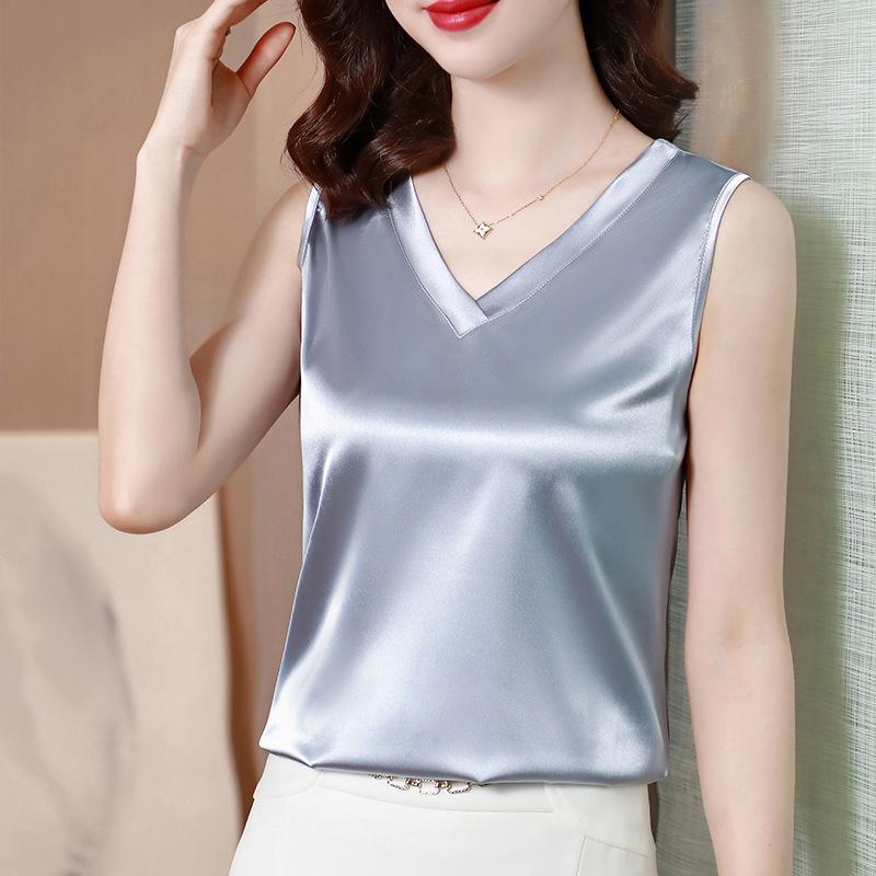 キャミソール レディース 黒色 ノースリーブ トップス サテン Vネック インナー 通勤 オフィス カジュアル きれいめ 上品 エレガント 白 黄色 グレー 豆グリーン シャンパン色 青色 M L XL 2XL 3XL 4XL