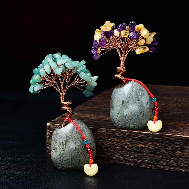 置物 金運アップ 招財 開運 風水 天然 黄水晶 シトリン 発財樹 オブジェ 卓上 デスクトップ リビング 玄関 オフィス レトロ モダン インテリア 飾り