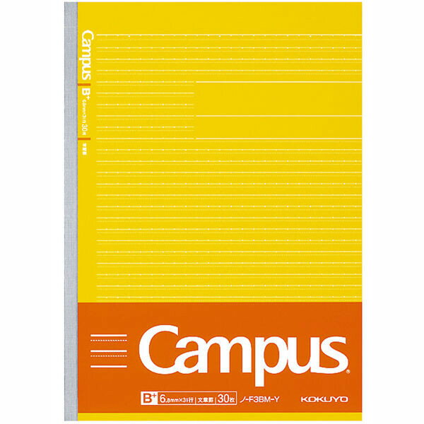 コクヨ 学習罫キャンパス ドット入り文系線 文章罫 セミB5 30枚 6.8mm罫 余白ライン入り 31行 黄 ノ-F3BM-Y ノ-F3BMN-Y - 送料無料※800円以上 メール便発送