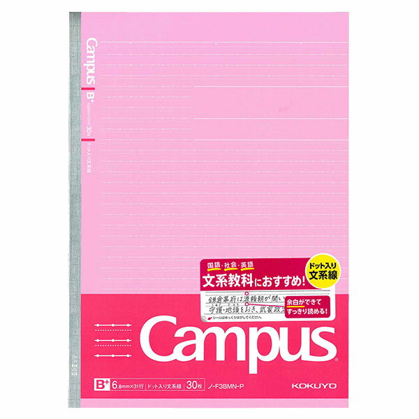 KOKUYO|コクヨ Campus(キャンパス) ドット入り文系線 ノート(余白ライン入り) ピンク F3BMN-P [セミB5・B5 /6.8mm /ドット入り罫線]