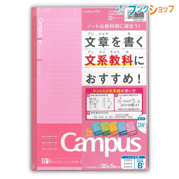学習罫キャンパスノート ドット入り文系線 5色パック セミB5 B+罫 6.8mm 4254 コクヨ ノ-F3CBMNX5 国語 社会 英語 余白あり【メール便OK】