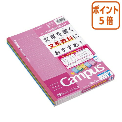 ★10月16日17時注文分よりポイント5倍★キャンパスノート コクヨ キャンパス(ドット入り文系線)セミB5 余白ラインB罫 罫幅6.8mm5色パック ノ-F3CBMNX5