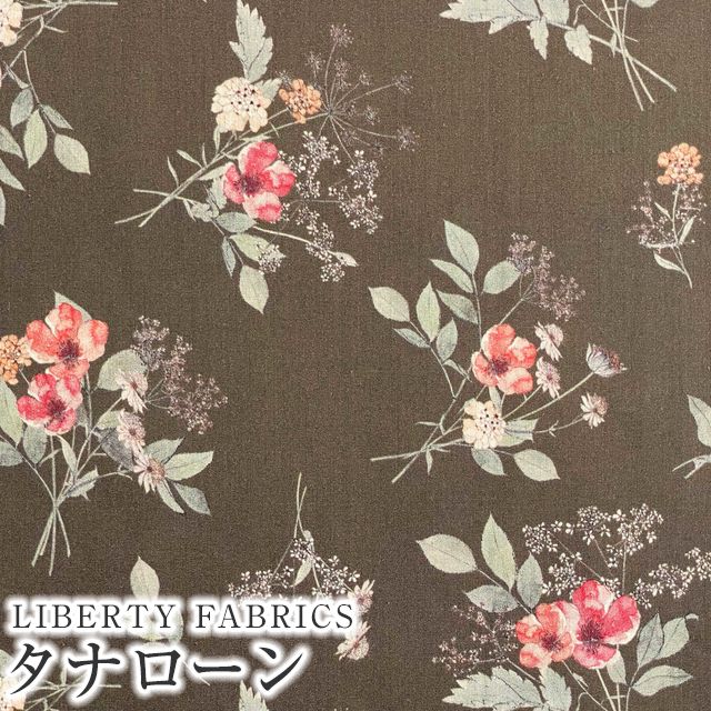 LIBERTYリバティプリント 国産タナローン生地<Irma's Bouquet>(イルマズブーケ)【ココアブラウン地×レッド花】DC34397-J24C